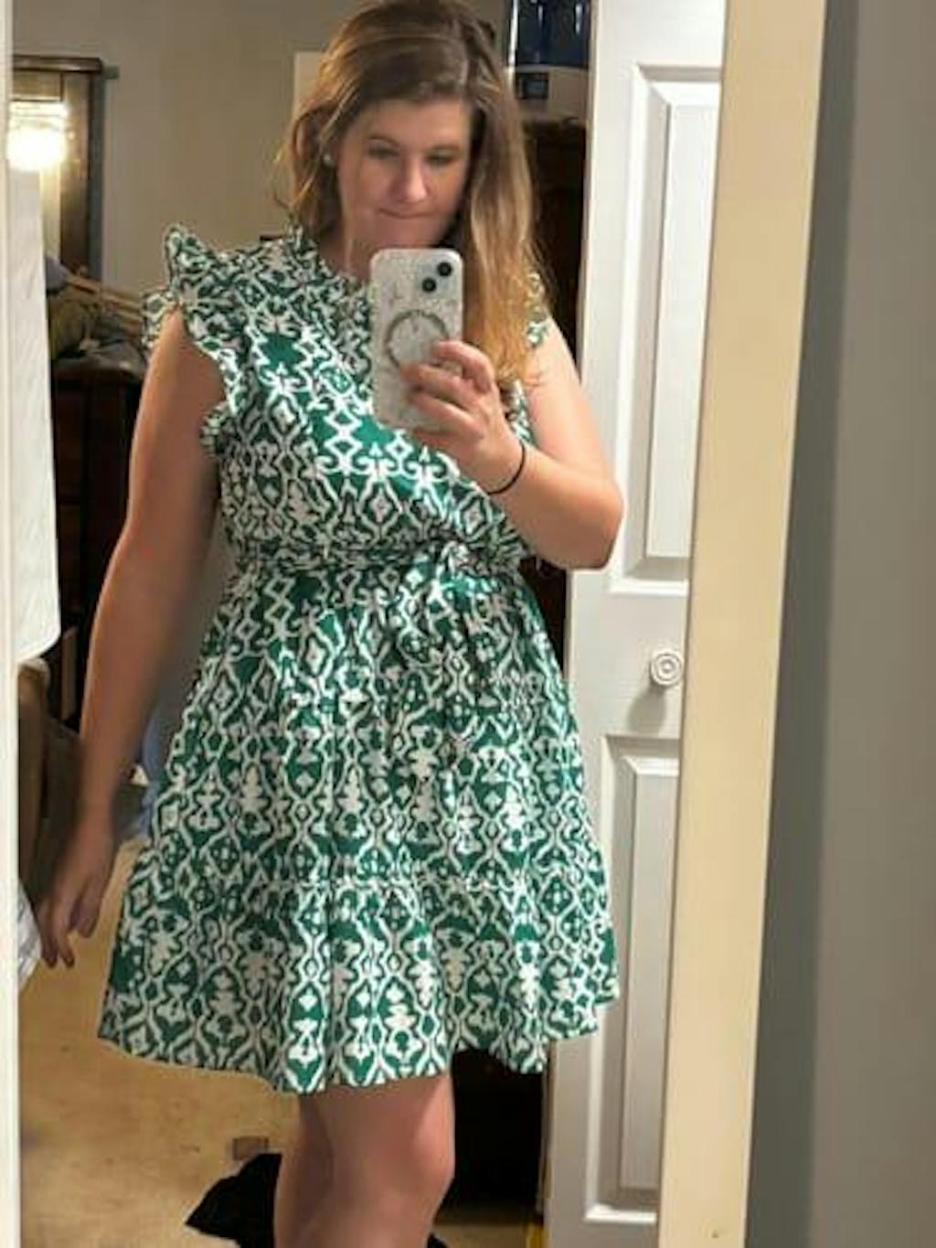 What I didn’t like: the fabric!!! It is so cheap and didn’t breath well at all (which is disappointing because it feels swishy like sweatpants were made back in the early 2000s, without the cotton liner, so I expected a little more breathability). I also wish the fabric was cut better in the panels of the dress- it’s not straight where it should be which disappointed me.