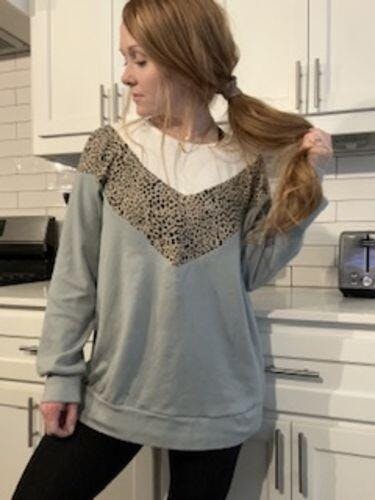 Oversized Chevron Nursing Sweatshirt- Cheetah Sage