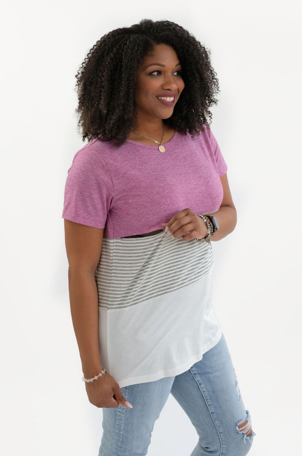 Love this shirt! So comfortable and doesn’t even look like a nursing shirt! Very easy to nurse discreetly, quickly, and on the go. It fits our lifestyle perfectly!