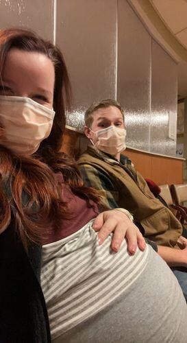 Fits all the way to 40 weeks! Great zipper access, I loved wearing this to the hospital for baby time and MANY times after! Looks great with leggings or jeans!
