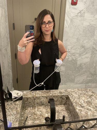 Nursing Queen does it again with another fantastic office-appropriate pumping shirt. The material is really high quality and I love the fit. You absolutely cannot tell this is a pumping shirt - the zips are so well hidden. I will continue to wear this after I’m done pumping!