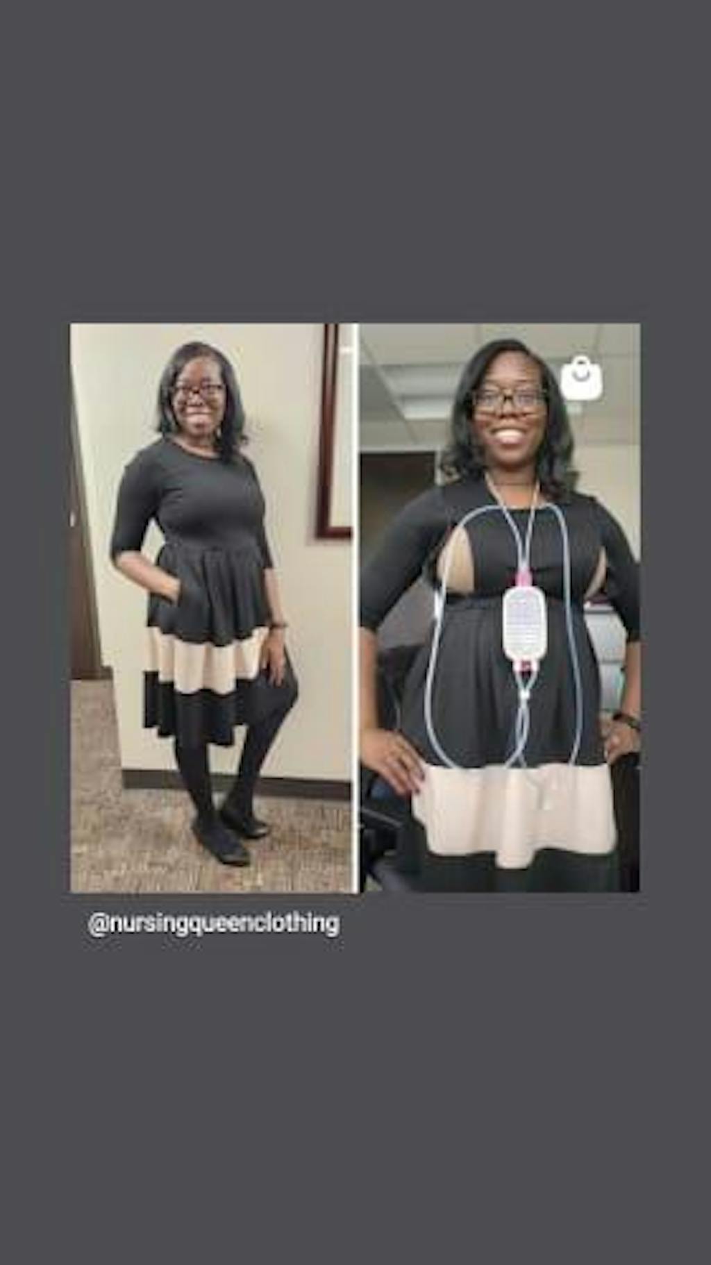 Modeling the black breastfeeding dress are 5’6” Alex and 5’9” JeriKay. Alex usually wears size 2 and is wearing size XS in the picture, while JeriKay typically wears size 20 and is wearing size 2X in the image.