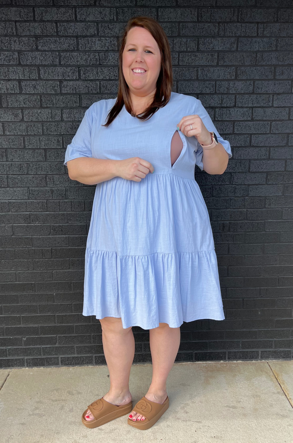 Light blue dress for breastfeeding