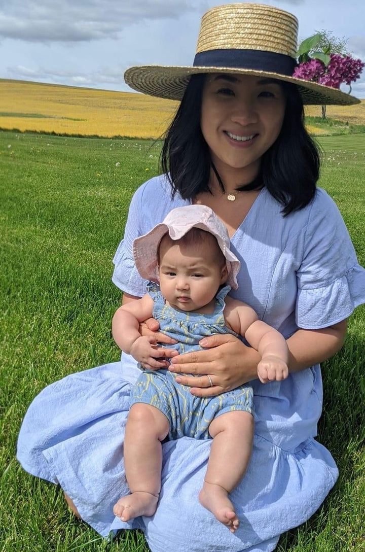 This beautiful cotton blend dress looks so cute with a pair of wedges or flats. It’s fully lined and has pockets!! Like all of our designs, it's super flattering for a postpartum tummy because it flows away from the body! Some moms have found this is also maternity friendly!