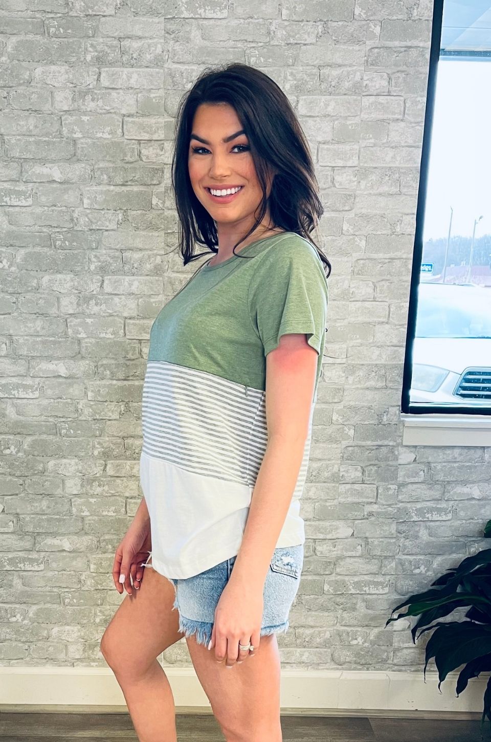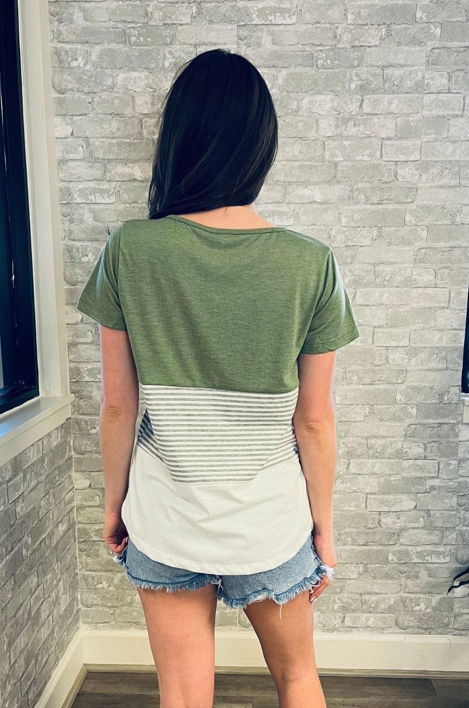 Nursing T-Shirt- 3 Block Colorblock- Green