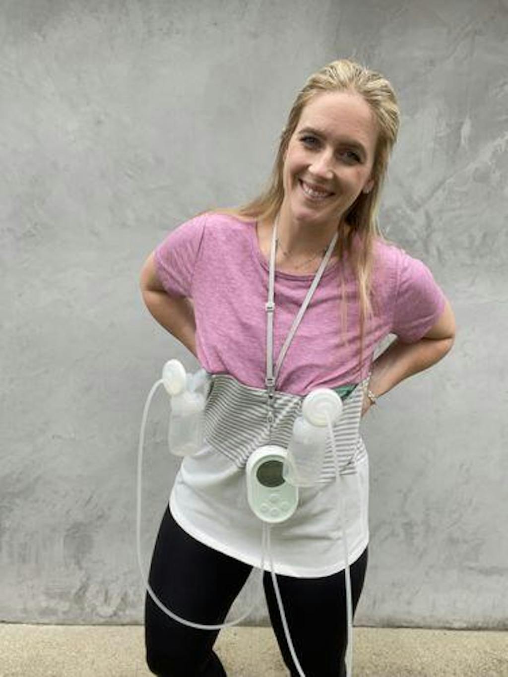 I’m obsessed with pink so this color makes my heart happy. This too is easy to dress up or down. It’s soft and comfortable for running around with my toddler. I can wear it with jeans or leggings. Also the high quality two way zippers for my flanges while I’m pumping is super helpful.