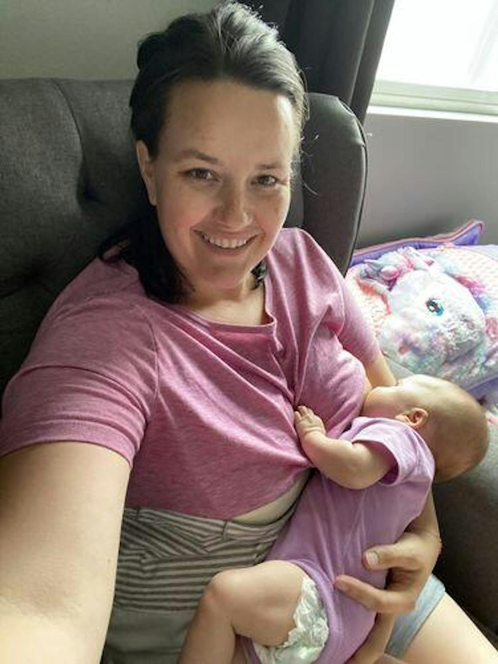 Love this shirt! So comfortable and doesn’t even look like a nursing shirt! Very easy to nurse discreetly, quickly, and on the go. It fits our lifestyle perfectly!