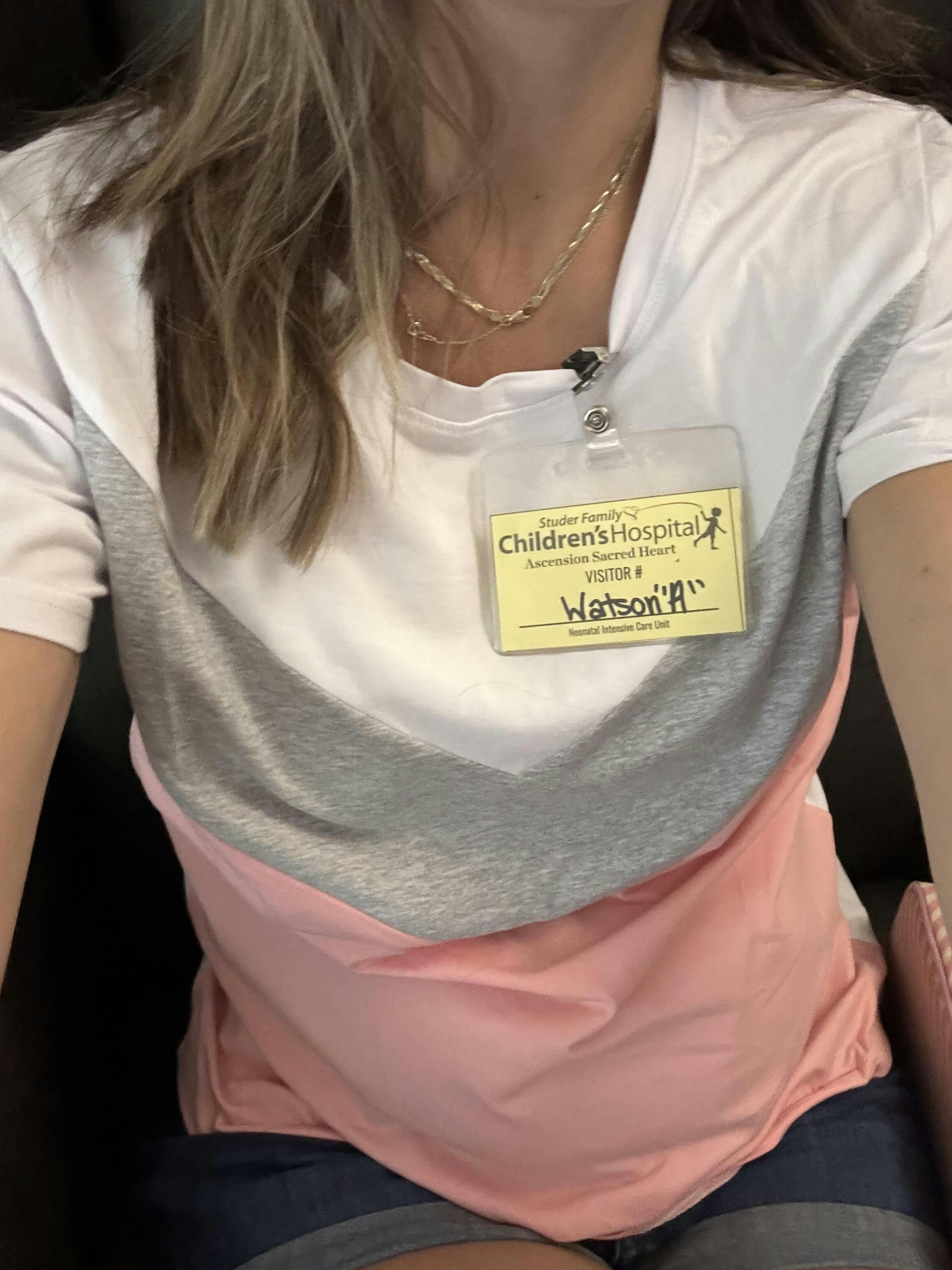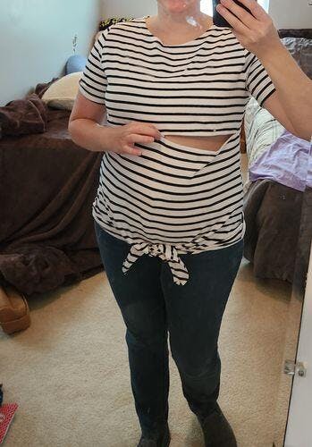 NURSING ACCESS: The striped tees have one long zipper with pulls on both sides. The chevron tee has two slant zippers.