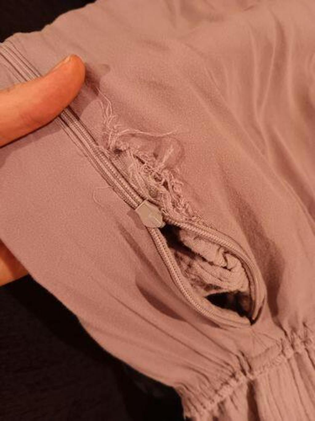 I'm so sorry about the lining sticking to the zipper, Jessica! I checked our emails and messages and didn't see anything from you. Please reach out to us at help@nursingqueen.com.