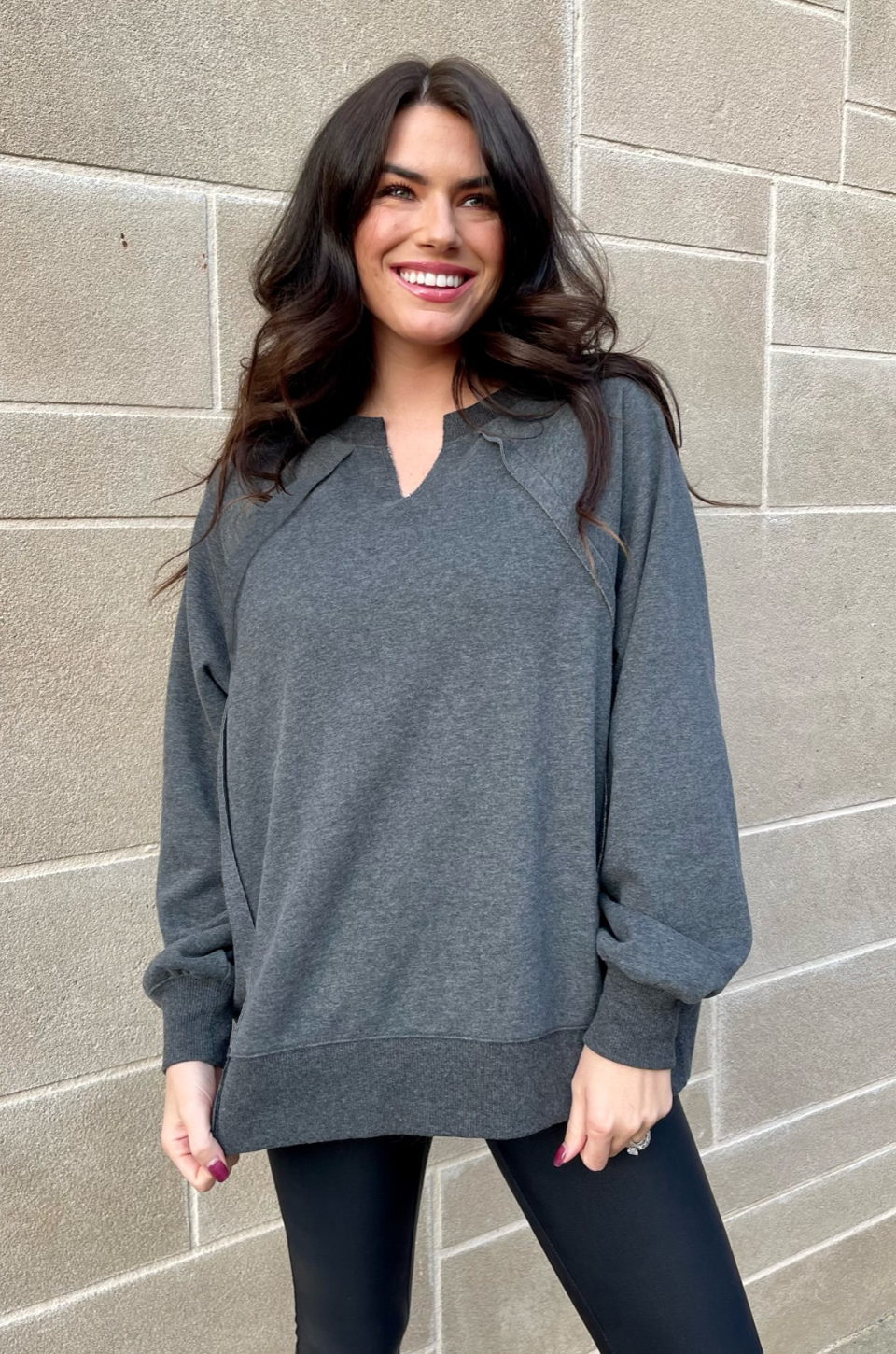 This one for you oversized fans! This one feels like a big hug! We love the all-over exposed seam detailing and the side slits!