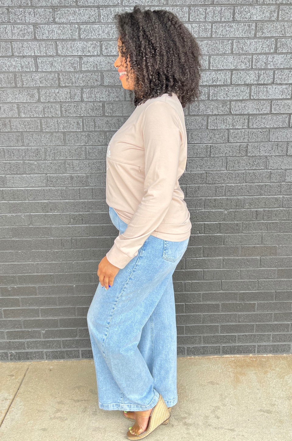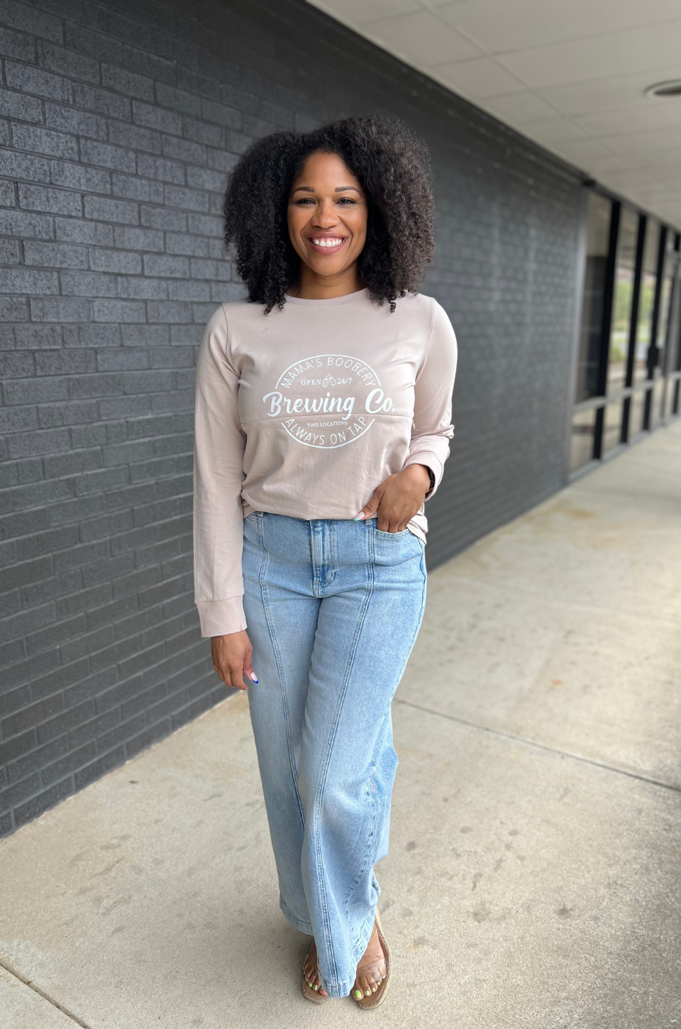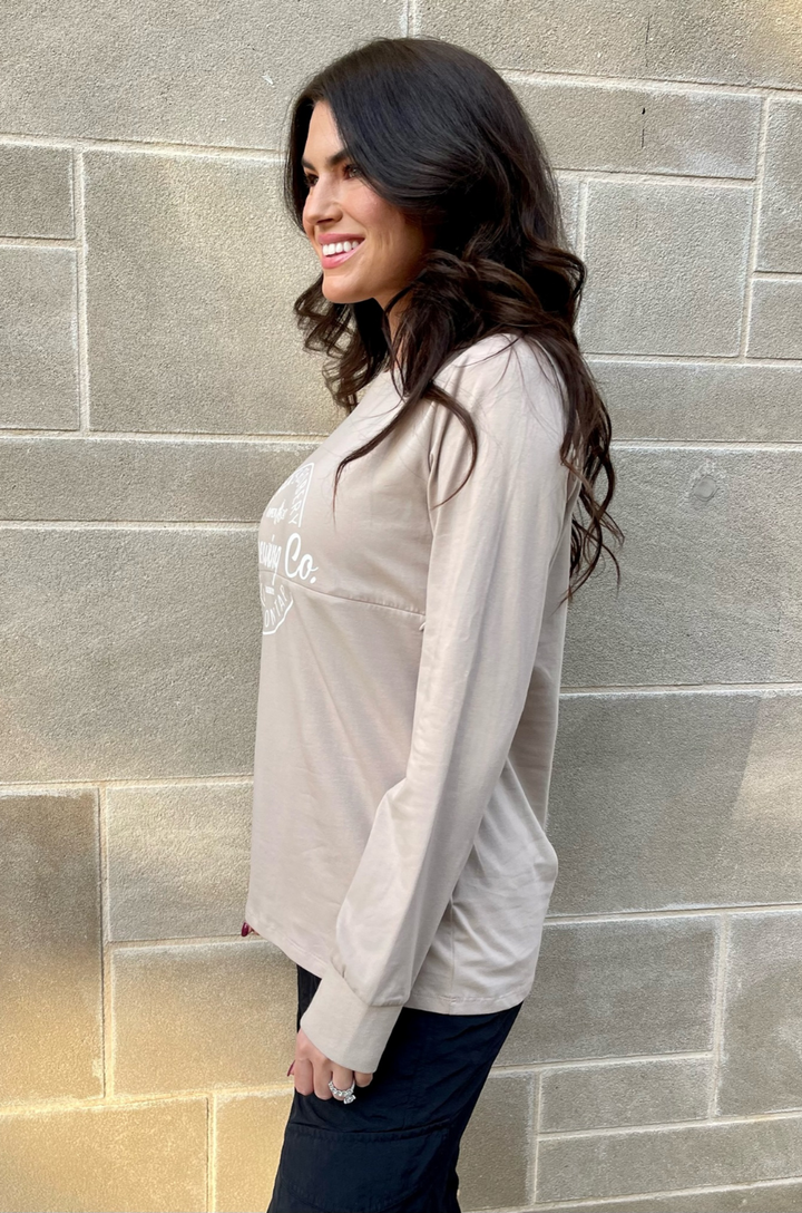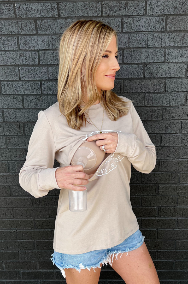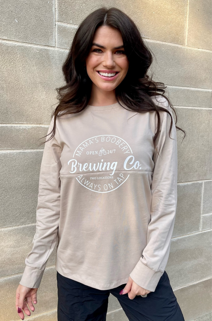 Mama's Boobery Long Sleeve Nursing Top - Tan