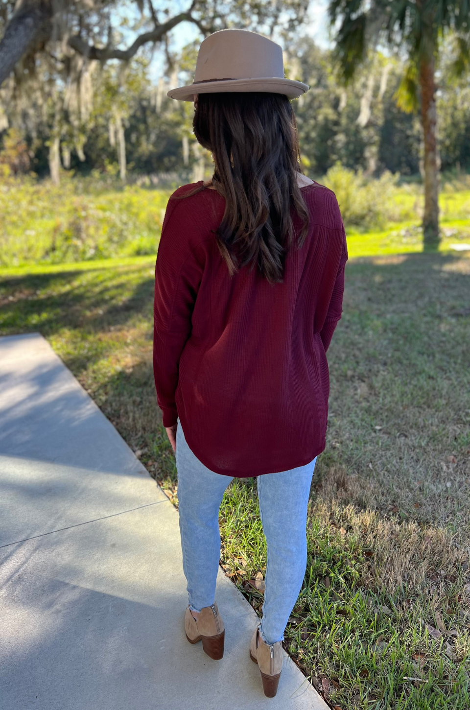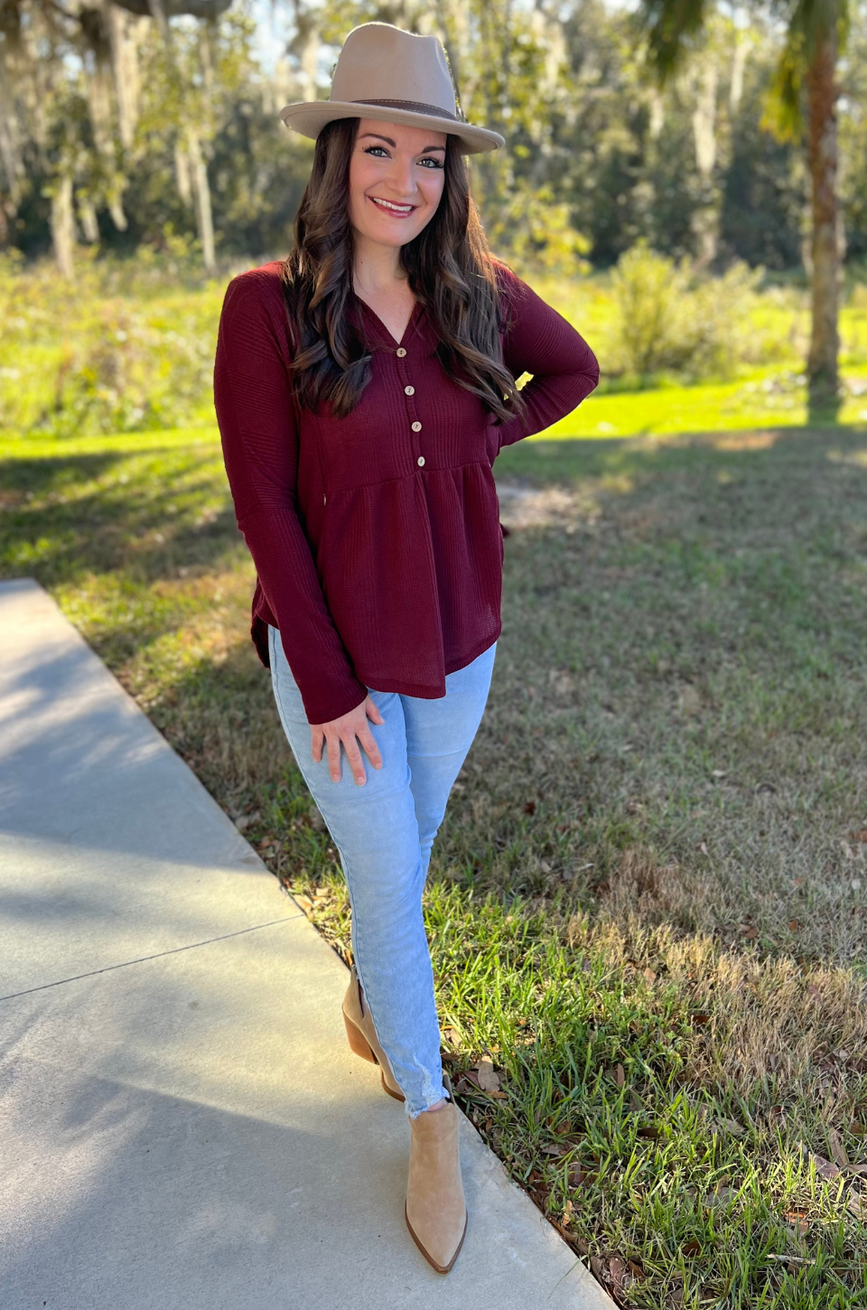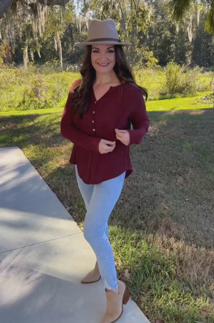 Our nursing waffle knit top is perfect for jeans and booties or great for layering!