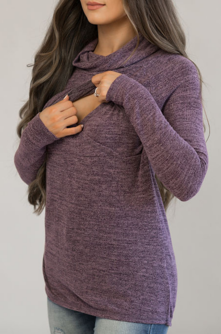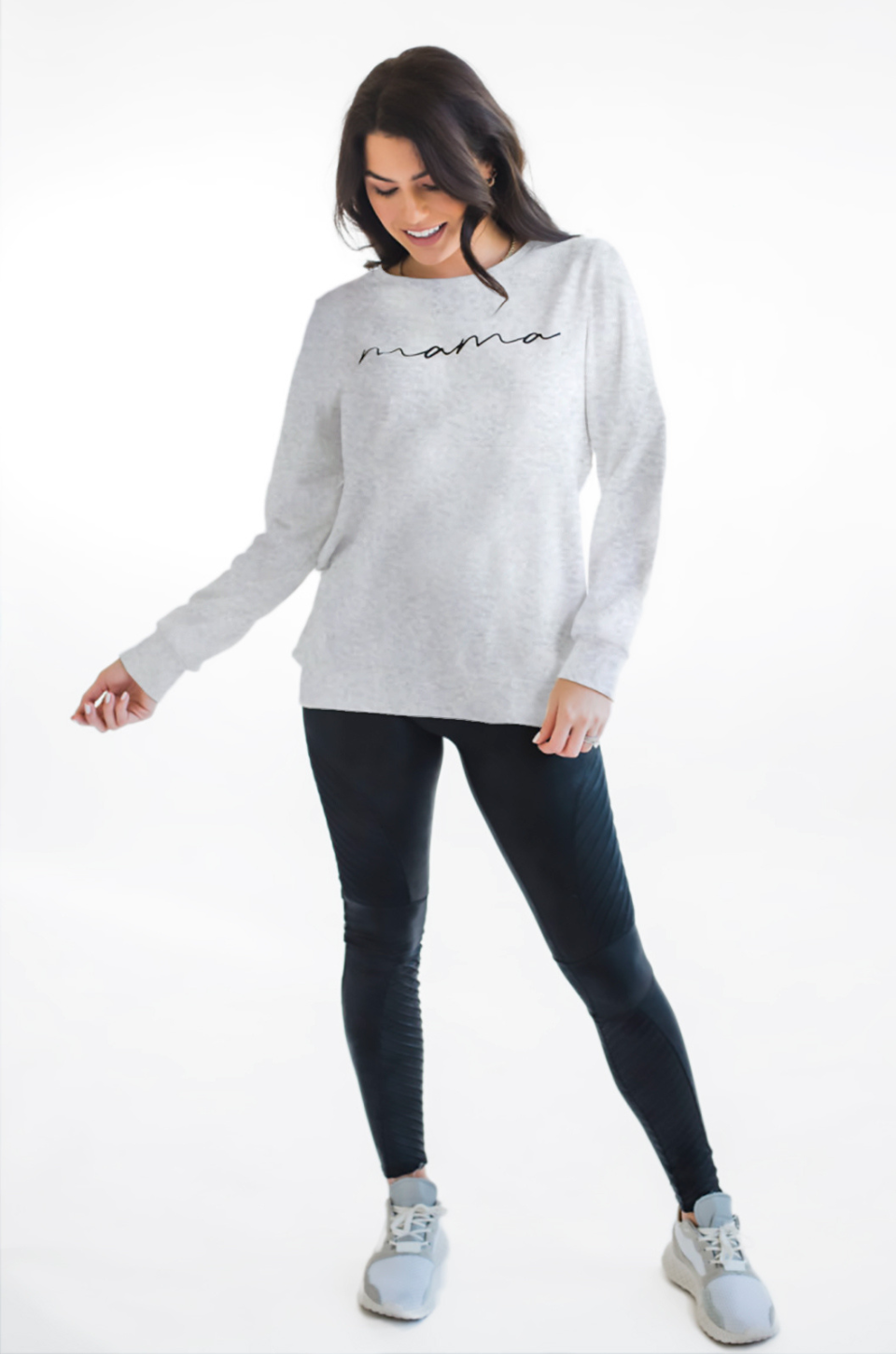 Our classic cotton long sleeve top in black is perfect for layering with cardigans. Our super soft and cozy asymmetrical sweater with the lift up flap access is great with jeans or leggings! And our bestselling "MAMA" sweatshirt in light gray is one of our top sellers! Super low return rate on these which makes gift-giving oh so easy!