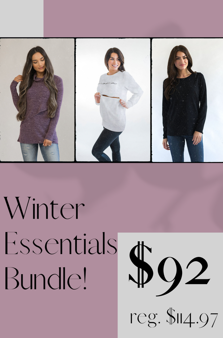 If you're looking for some winter/fall nursing staples - this bundle is perfect! We have you covered with a basic layering tee, a cozy sweater and a bestselling sweatshirt.