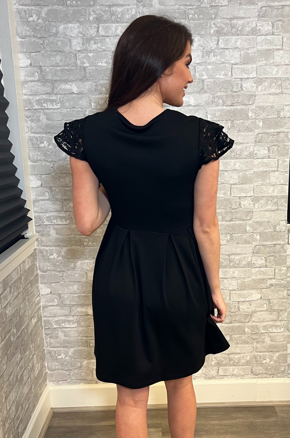 Black Lace Nursing Dress- Flutter Short Sleeve