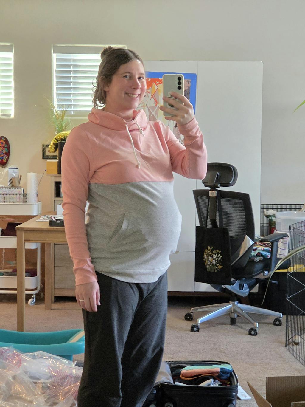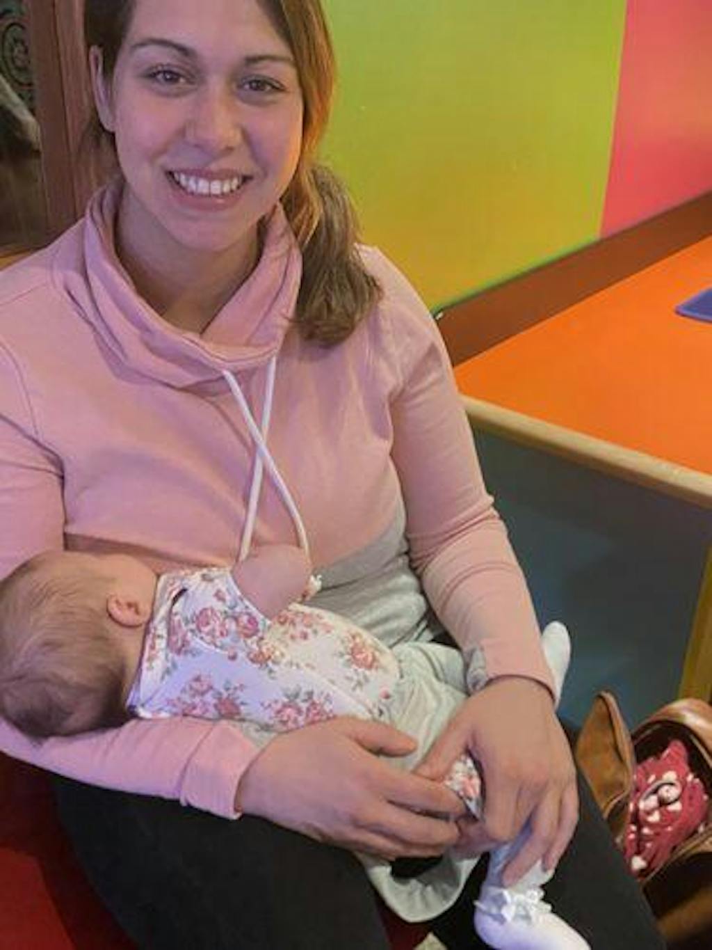 Nursing Sweatshirt Pullover - Colorblock Pink/Gray