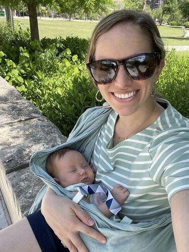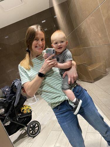 This shirt was perfect for traveling with my little one! It was his first time on an airplane. It’s usually hot on the plane, so I didn’t want have to cover him up and wanted both of us to be comfortable.